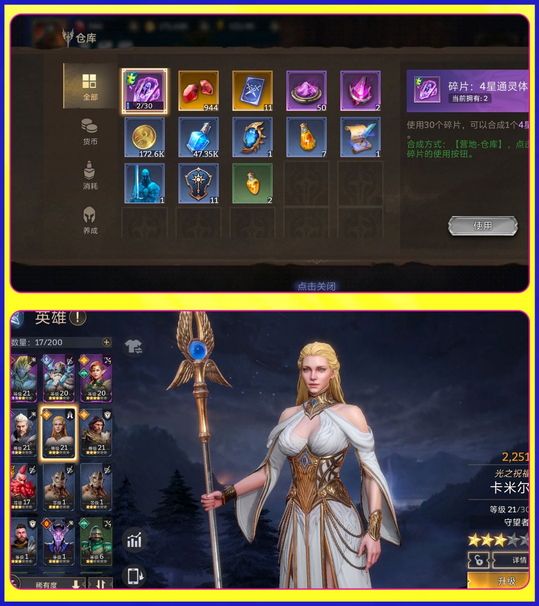 上图为资源展示下图为英雄展示