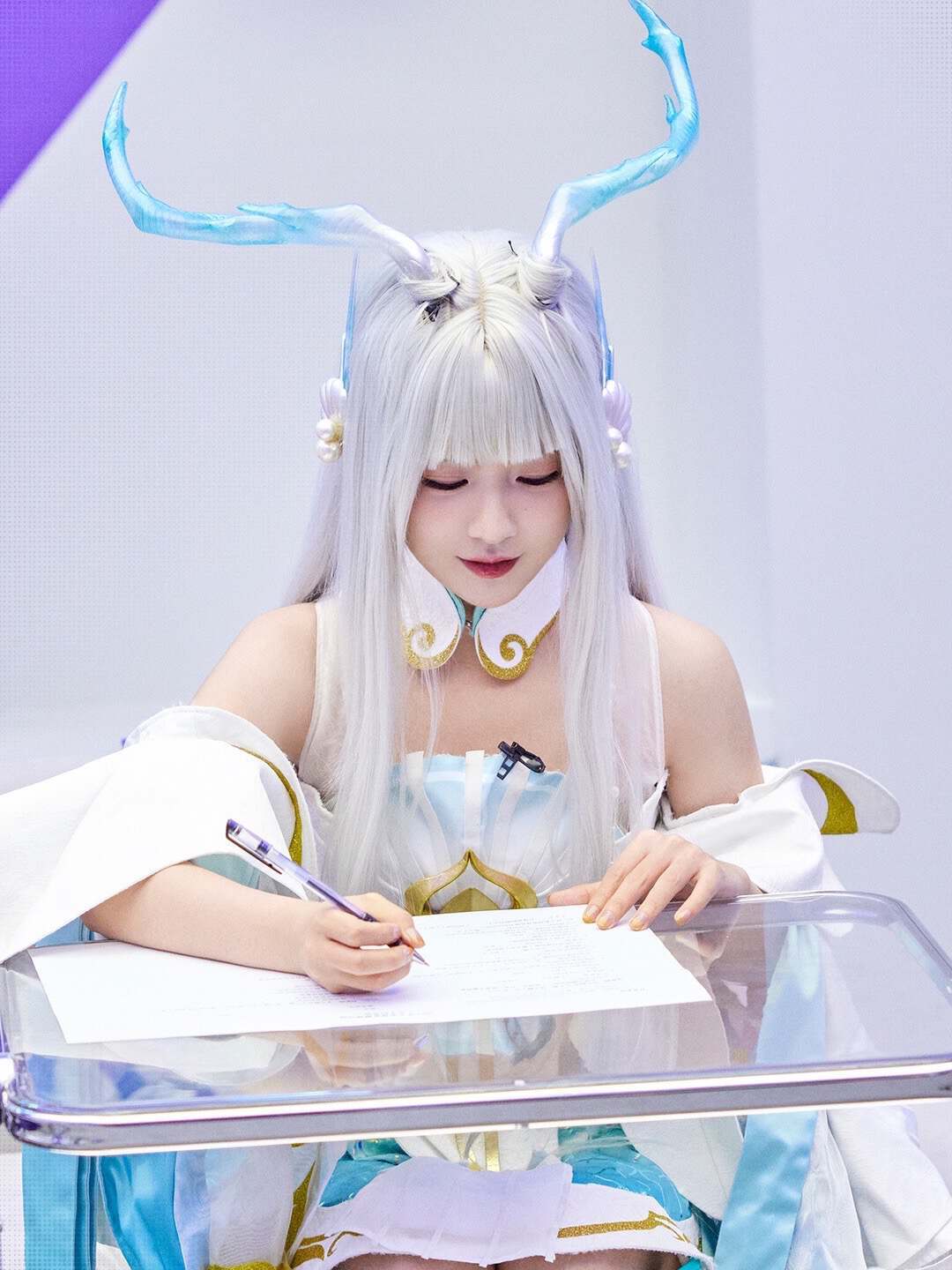 以至于明星在参加节目的时候,也会选择COS这款皮肤,因为实在是太好看了。可以看到,明星赖美云在节目中就COS过西施的游龙清影这款皮肤,而且形象特别的搭,头上两个龙角特别的好看,再加上自身蓝白色的穿搭,形象特别的小清新。而且她还打着赤脚,在形象方面可以说是特别的还原。