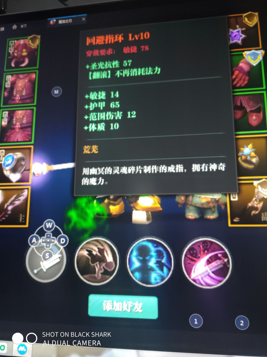 这套玩法是已无限蓝一直丢影袭触发蛇刀和鬼影打伤害,不缺蓝因为法盘回蓝和虫王回蓝,所以不需要闪避戒指。