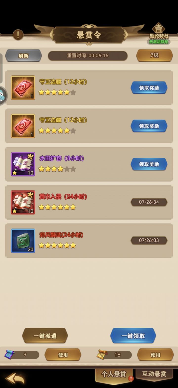 悬赏令是不是一般人一键派遣,完事,其实悬赏令也是有讲究的,把自己必备的点完,剩余的可以左上角进行洗牌,10元宝重洗一件物品,一般50。100元宝也能洗到,绝对不亏,还能洗到高级物品,美滋滋