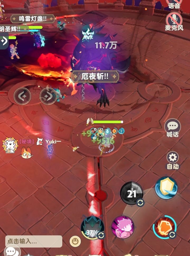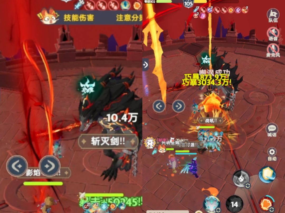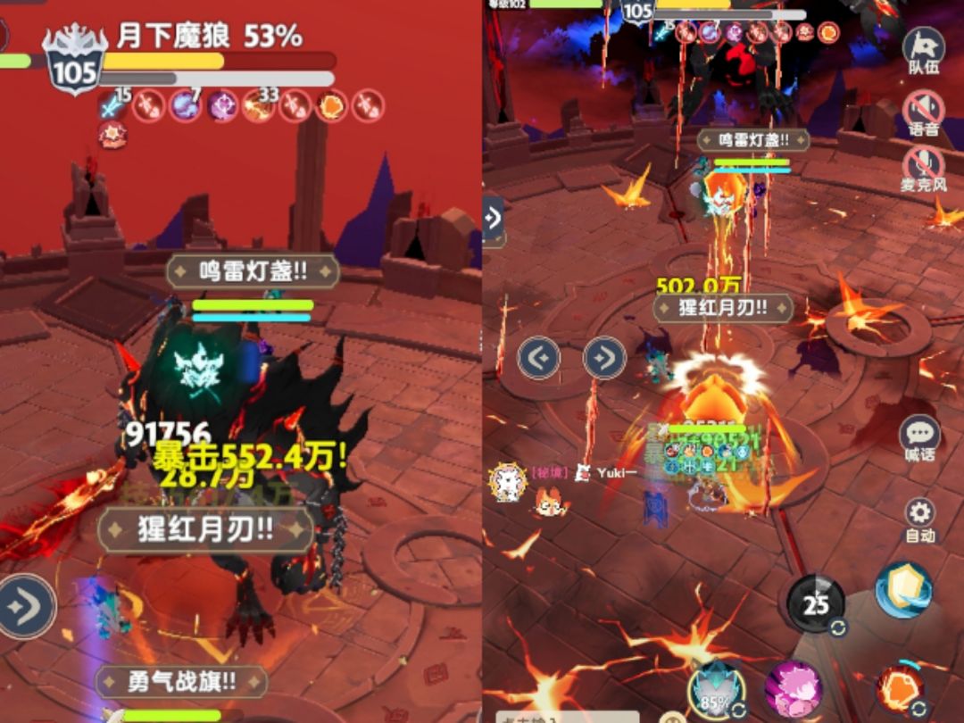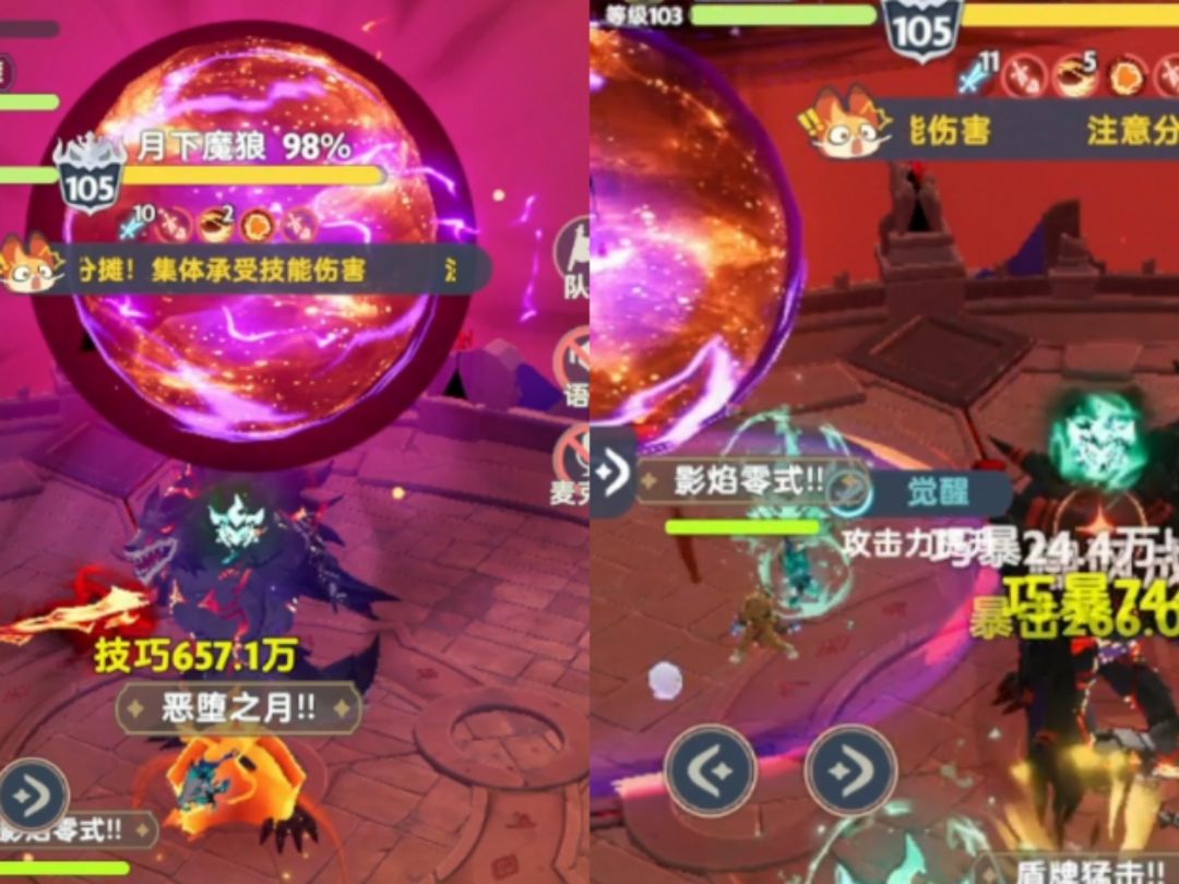 当「月下魔狼」释放【斩灭剑】时,所有友方注意观察光柱所在的位置,并及时通过移动按钮赶到被标记的友方身边分摊伤害。