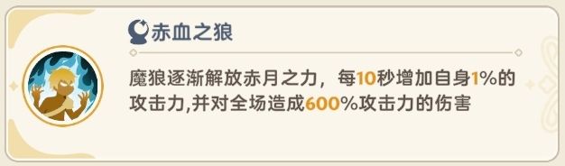 「月下魔狼」每10秒增加自身1%攻击力,并对全体友方造成少量伤害,Buff的层数可以在「月下魔狼」血条下方看到。