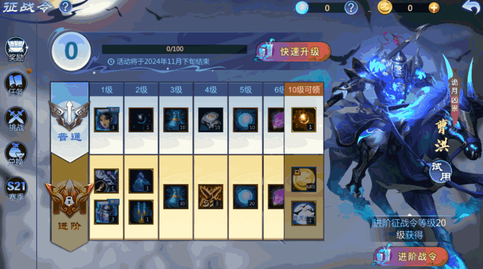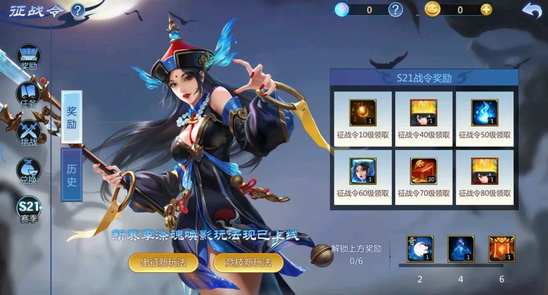 S21赛季新增奖励!当征战令等级达到10、40、50、60、70、80级时,会解锁上述的6项奖励,而达累计解锁2、4、6项奖励时,还能额外获得下方进度条的三项奖励!水岭注奇物-诡月魅影、传送*诡月幽影(7天)、称号*诡月幽影等您带走!征战令赛季更新时,会根据上赛季娱乐战力和官渡段位发放绑定梦三币奖励,具体如下: