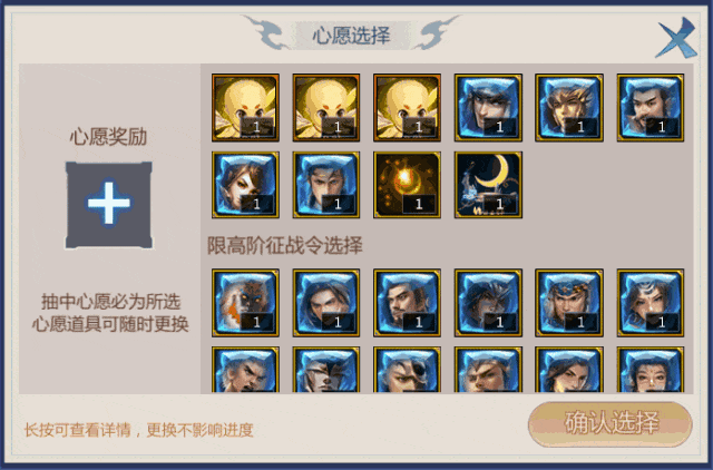 如果没有解锁高阶征战令,仙术师也可使用竞技之魂在心愿宝箱中选取并抽取心愿奖励,保底抽中的奖励必为自己选中的心愿奖励,且心愿可随时更换!