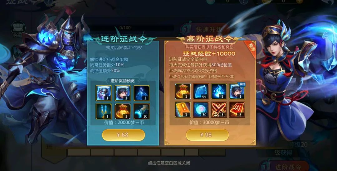 注:付费购买进阶征战令可激活首充奖励、会员充值、消费经验,以及激活其他充值类活动。
