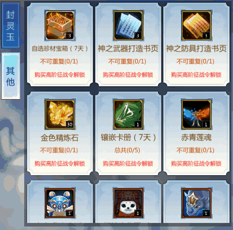 征战令以及每日活跃宝箱中获得的竞技之魂可在本界面内直接兑换各种极品封灵玉!