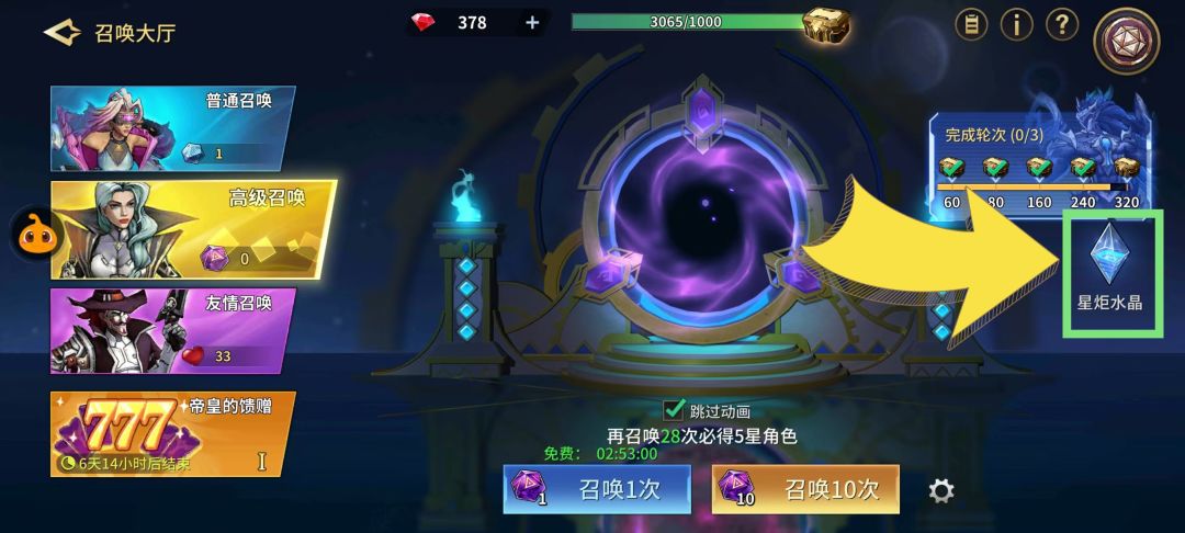 零氪开局先攒资源,第三天再抽,注意点【星炬水晶】很多人都忘了点,建议微氪多囤资源,够320发参加活动,后续继续屯继续等活动。