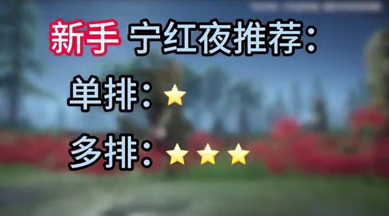 所以宁红夜新手单排推荐指数1星,多排推荐指数 3 星。