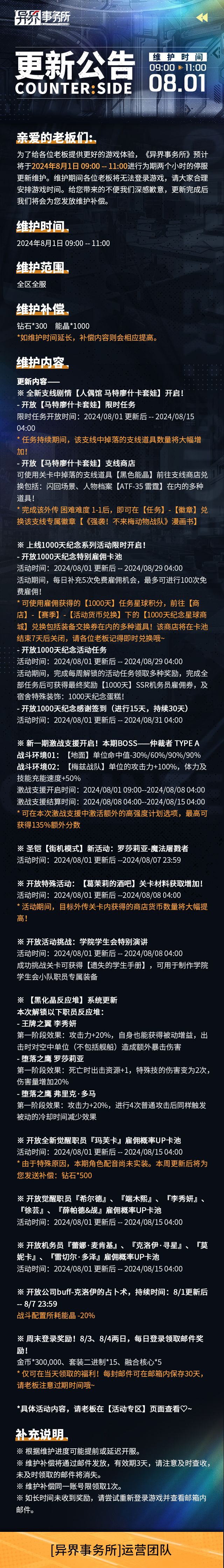 更新情报 | 全新支线、纪念活动开启,解锁觉醒李秀妍等反应堆