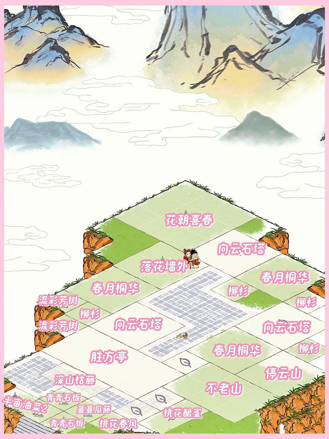 建筑:花朝喜春、春月桐华、向云石塔、落花墙外、胜方亭