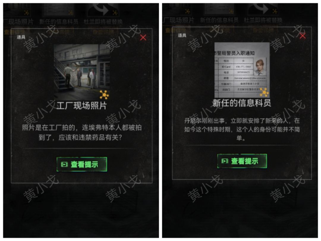 1.剧情后,解锁疑问(神秘人是否可信?)和线索(工厂现场照片、新任的信息科员)