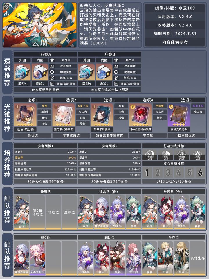 【V2.4攻略】V2.4上半云璃池养成配队攻略