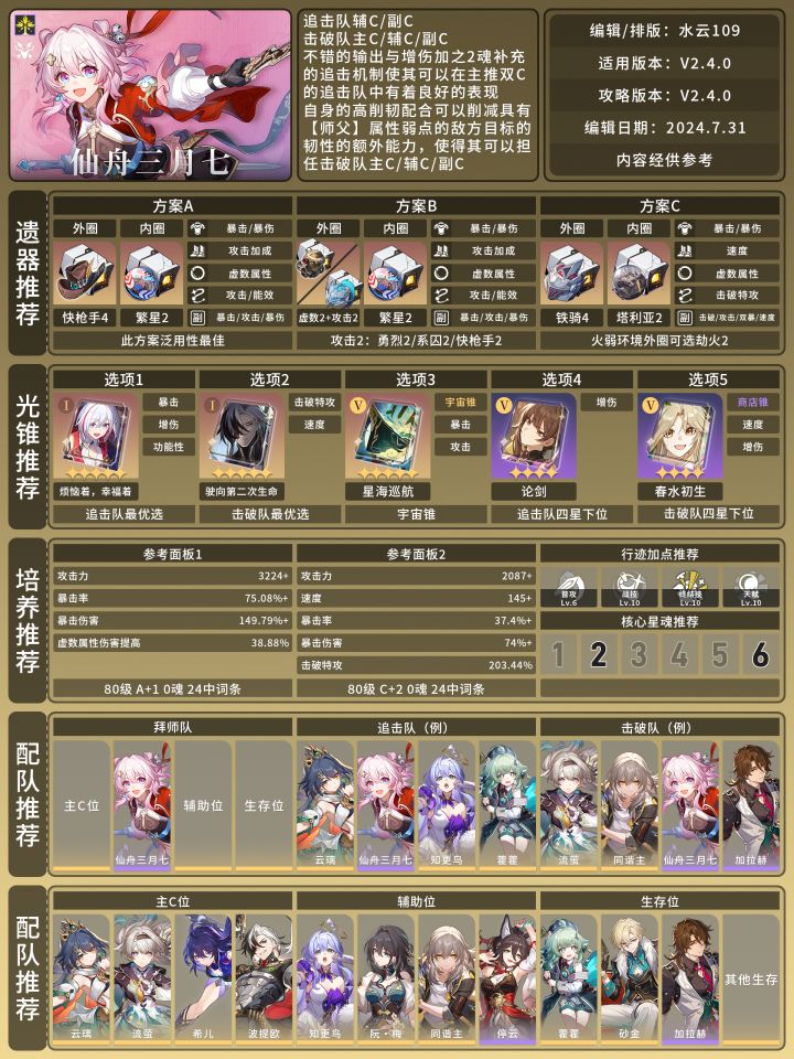 【V2.4攻略】仙舟三月七养成配队攻略一图流