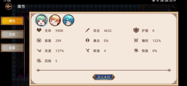 另外两个角色充当工具人,选择引力波、黑洞、冰晶、阴阳玉技能。