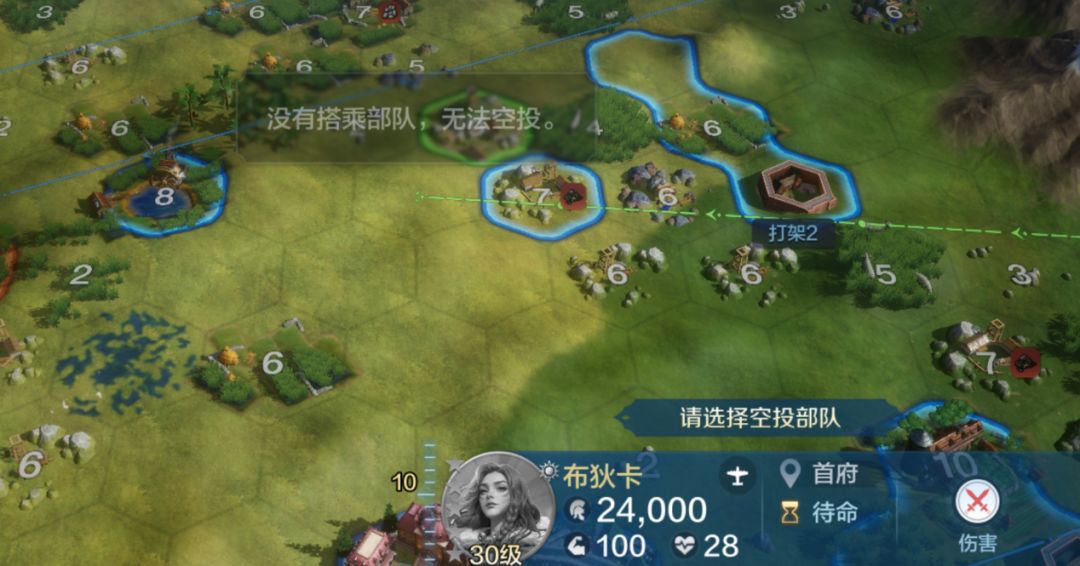 如果你投放了一个地方,点击战略但是没有出现空投的字样,那么说明你的目标投放地块并没有视野,需要我们去开视野,这里建议搭配侦察气球或者别的飞行队伍过去开视野,并不是超出了投放范围,因为超出投放范围会让你选择最近的投放位置。