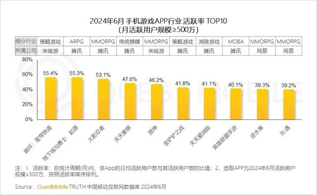 Quest Mobile:星铁6月用户日均活跃率第一