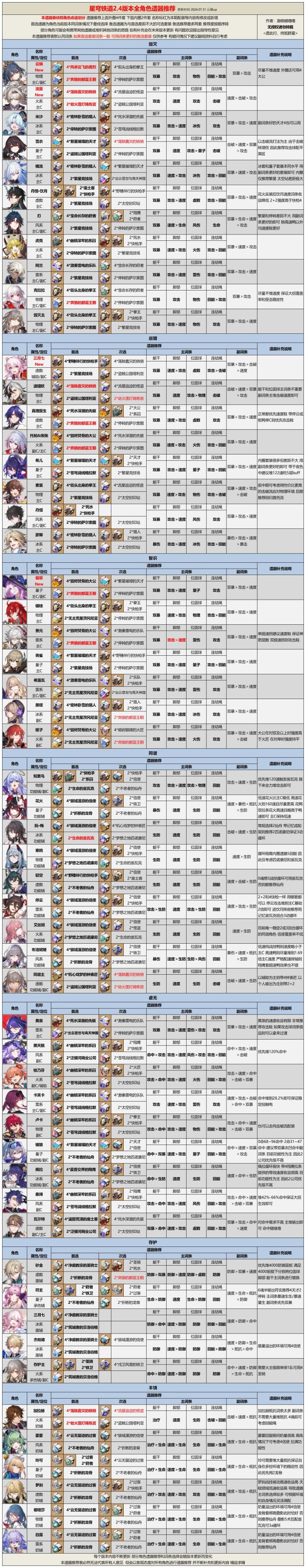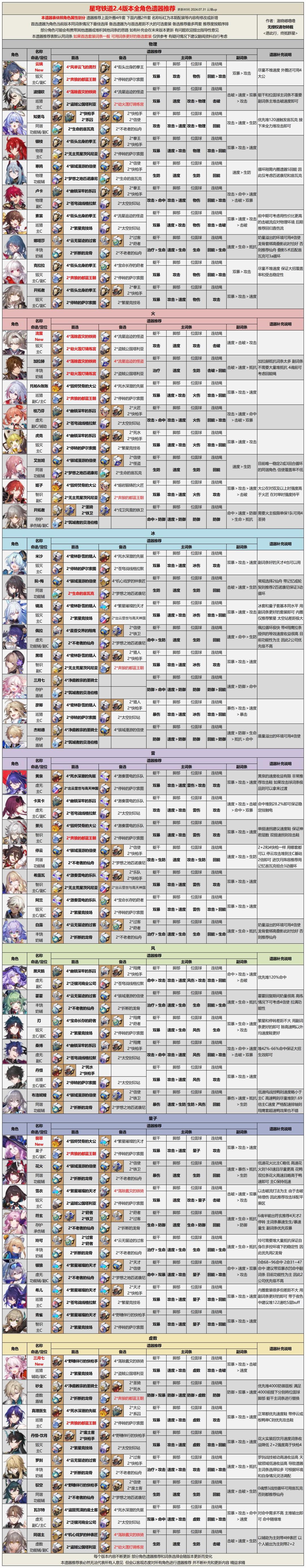【V2.4攻略】2.4版本全角色光锥遗器推荐
