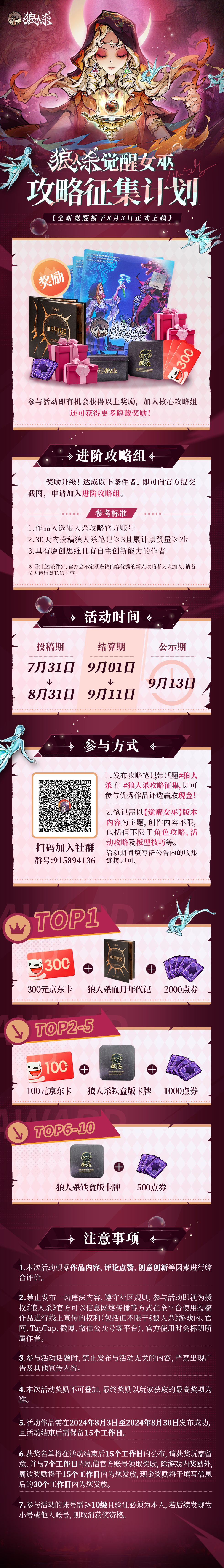 2.带话题#狼人杀官方[超话]# 和#狼人杀攻略征集# 发布新角色相关攻略内容即可参与活动!