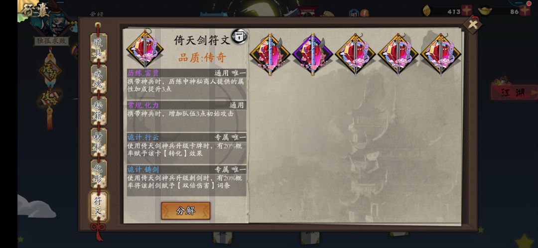 符文上线一个半月也就开了这三个能用的符文,第一个小极品符文必带不必多说,剩下两个勉强合格。可是切换符文太麻烦,有时候打到一半发现毒刺上了转化词条就很难受,所以想问问大家,富贾和狂烈综合来说怎么选?我现在处于游戏中后期,四职业主流红化形都有,不过全武侠筋脉还没点满。由于信仰武侠是赤练,所以会还是更倾向于狂烈。富贾虽然好用不过对我来说比较鸡肋,射箭、毒刺、叠甲、气爆木剑赌狗表示富贾不要也罢!(狗头)