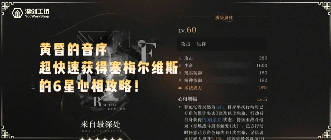 司辰们好呀!8月即将来临,塞梅尔维斯的专属6星心相——来自最深处也马上能够获取。那么,本篇内容就是快速刷信物来兑换该心相的攻略。
