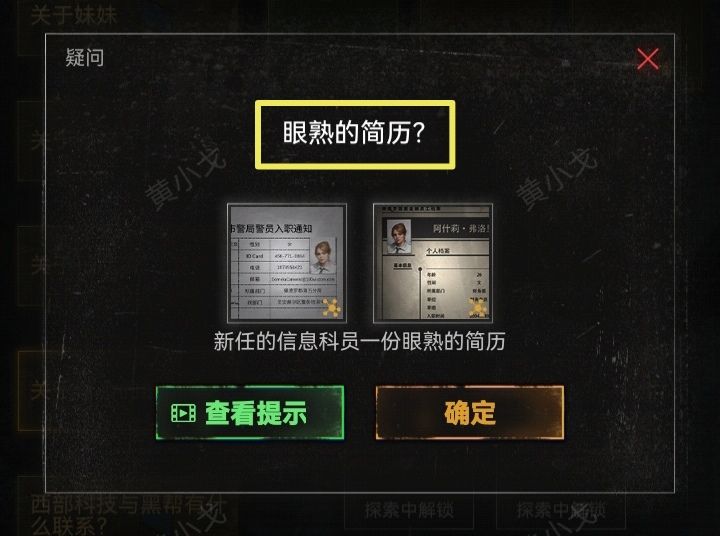 3.给疑问:眼熟的简历?填入线索(新任的信息科员、一份眼熟的简历)