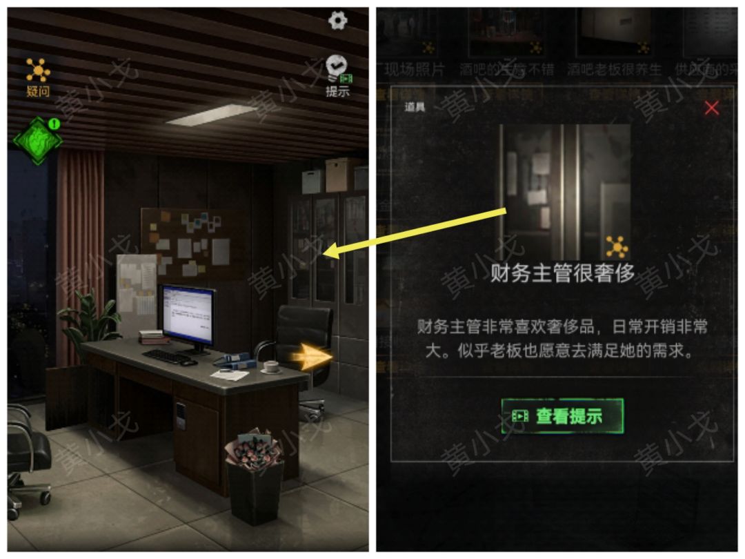 6.剧情后,解锁线索(公司接收过罪犯)和疑问(财务公司是否有妹妹相关的线索?);点击财务室的门,让阿什莉开门
