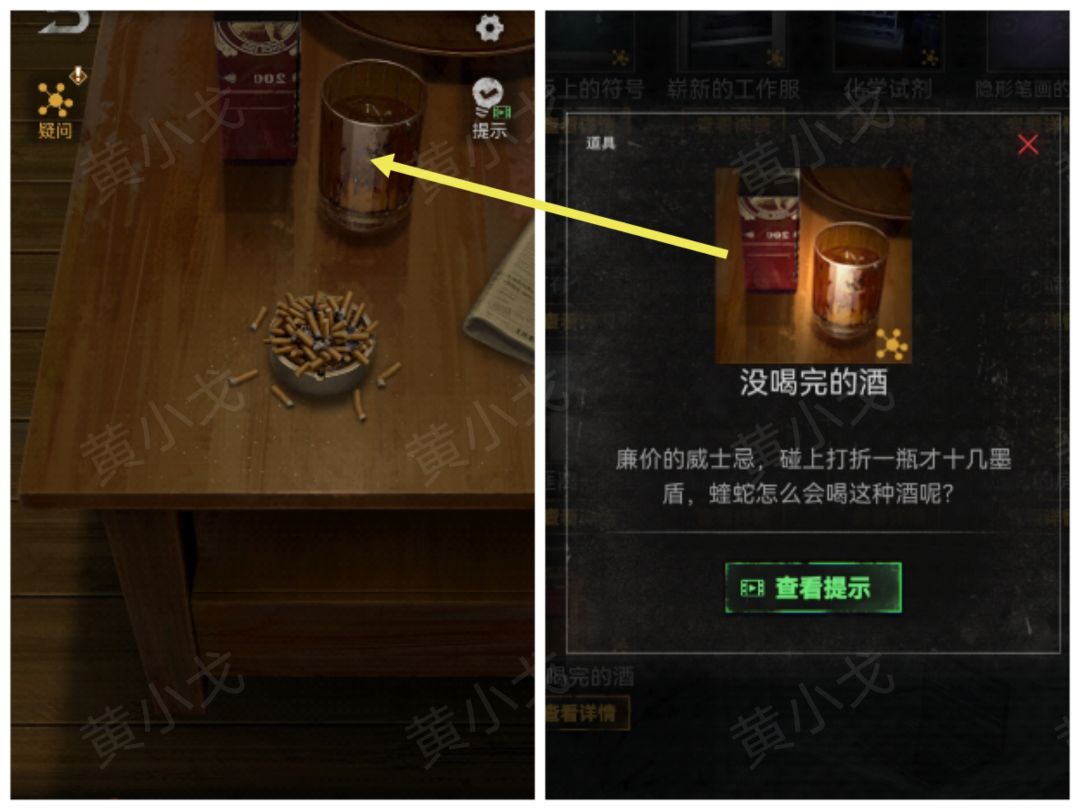 9.点击威士忌,解锁线索(没喝完的酒)