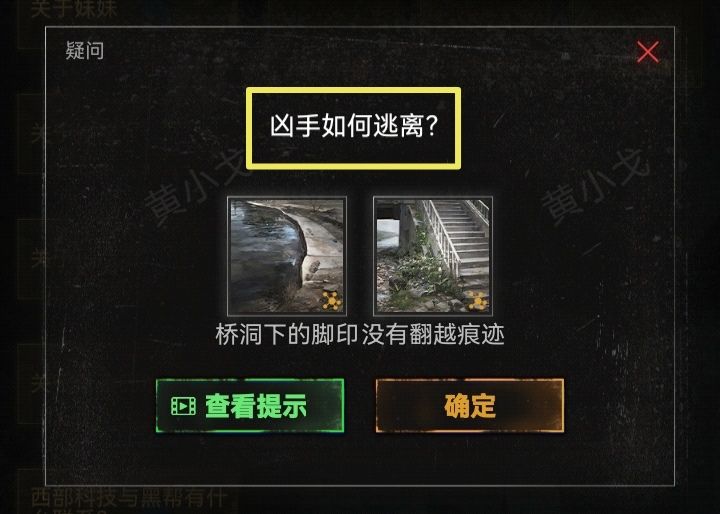 1.(桥面)给疑问:凶手如何逃离?填入线索(没有翻越痕迹、桥洞下的脚印)