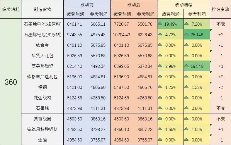 先看计算出最新利润表(此表没有考虑运送消耗的疲劳)