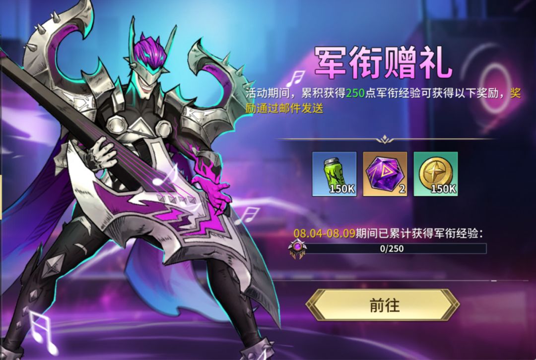 活动期间,累积获得250点军衔经验可获得角色强化剂、紫色信标、金币等奖励,奖励通过邮件发送。