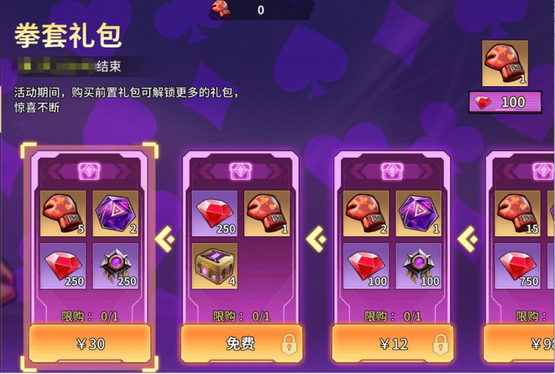 ●礼包内含:钻石*100、竞技场券*3、强化剂*3000