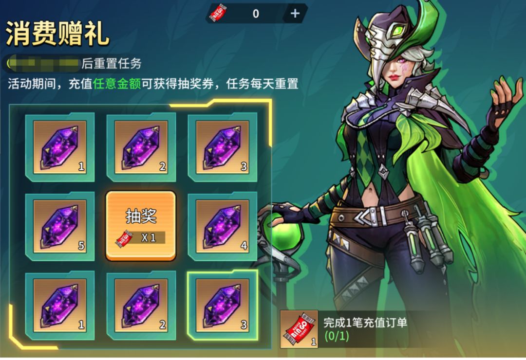 活动期间,充值任意金额可获得抽奖券,任务每天重置。