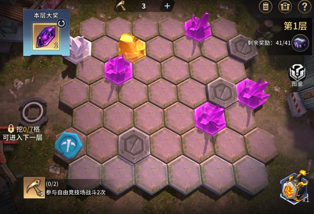 ③每层凿到目标格数的矿点,就能选择前往下一层,每层都可获得1个大奖,前往下一层后本层未获得的奖励将无法获取。