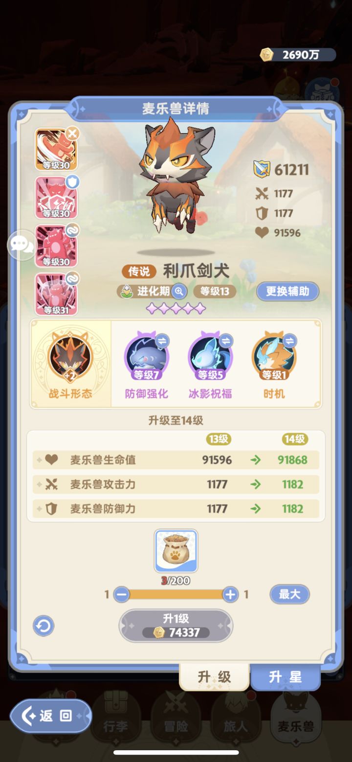 可以携带答案回升利爪 将魔魔狗多升一星