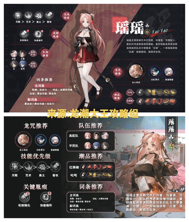 配队推荐,潮品、龙咒搭配,技能优先级,词条推荐等