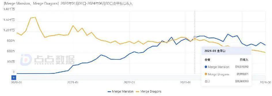 《Merge Mansion》《Merge Dragons!》收入情况对比