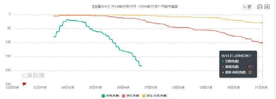 不过很遗憾,在以上策略的加持下,《庄园合合》依然反响平平,在上线至今的一周多时间里,就已经跌出了iOS免费游戏榜百名开外。
