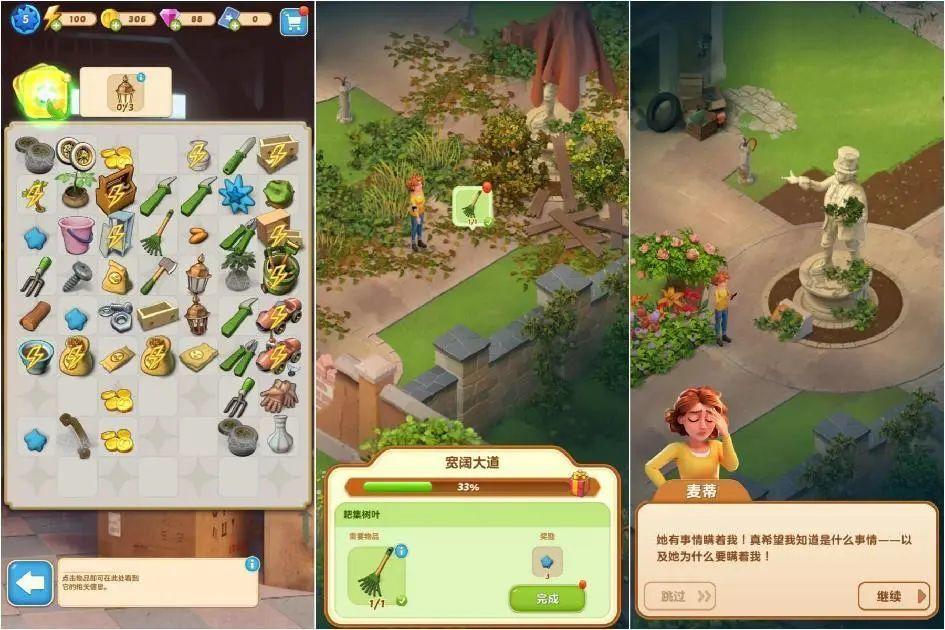 而庄园模块中,玩家在一步步将原本混乱的庄园整理干净并恢复其美丽的过程中,也能获得极大的成就感。游戏过程中随机掉落的新剧情,还将进一步吸引玩家的好奇心,激励玩家一次一次打开游戏继续推进剧情、探索真相。