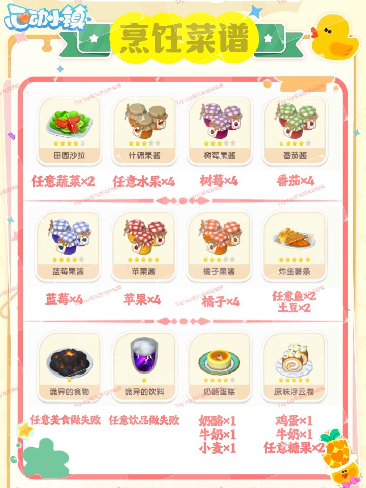 心动小镇烹饪食谱攻略💕超详细超有用