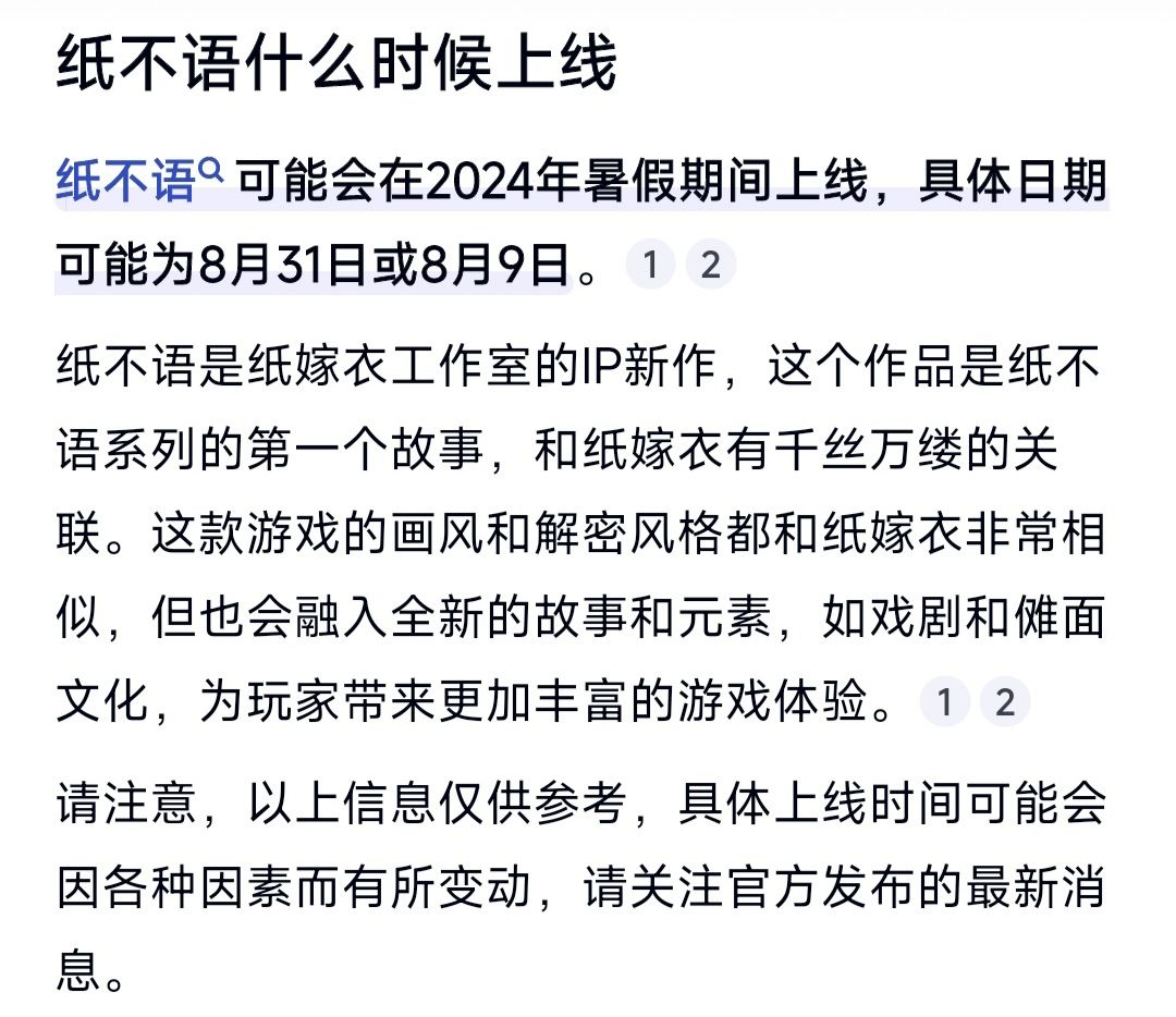 纸不语什么时候上线?目前没有具体的消息,但我可以编一些让你们参考下: