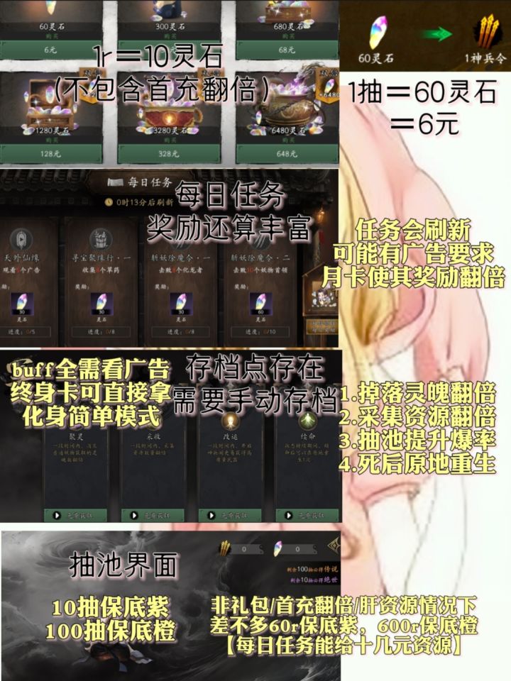 2.游戏氪金代币(指灵石)比例为1:10(非首充双倍情况下)「见p2」