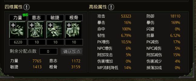 非充值玩家:起始有300金币可买商店装,通过怪物掉落、商店和拍卖行慢慢积攒装备升级。若扛不住怪就加骨气,扛得住则加攻击。