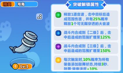 号角:进阶到红色即可。它有25%%的概率会中现一个无限穿透的声波,可以打击到更多敌人。还有 10%的概率触发鼓舞,能提升装备攻速 10%。