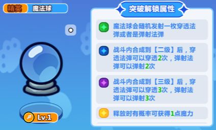 魔法球:可以一直进阶的装备。这个也是到后期可以跟S书合成雷电法书,属于必备装备。另外它在击中敌人的时候会弹射到另一个敌人身上,在前期属于比较好用的装备。