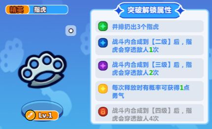 指虎:就是我说的虎爪爪,这个在前期就可以一直进化,因为到后期有了S装备以后它也可以跟盾合成更高级装备,是可以一直用的。而且虎爪爪可以穿透敌人,意味着丢出去之后可以打到更多敌人。