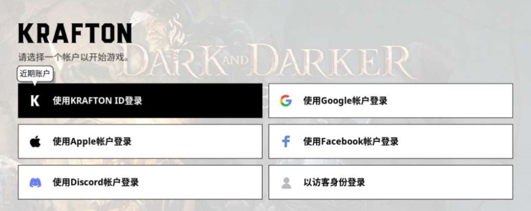 账号注册&账号绑定在登录界面选择KRAFTON ID(建议)或Google账号、Apple账号。