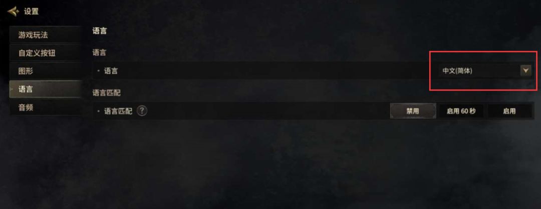 四、中文设置在游戏中设置页面选择“语言”,随后选择简体中文即可: