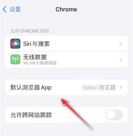 iOS在设置中找到Chrome,点选之后选择【默认浏览器应用】,随后将默认浏览器切换为Chrome。