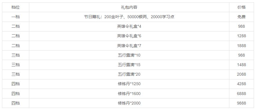 活动一:活动期间将限时上架节日礼包,礼包内容如下: