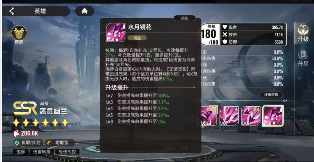 水月镜花,每3秒补充1只箭矢,攻速每提升30%额外补充1只,最多2只箭矢(峰值60%攻速)海蒂自身4米范围内有目标,释放无情觅影附带击退效果,每个目标4秒冷却,无目标则提高10%伤害
